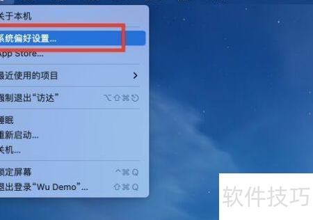 - 首先进入系统开始菜单,点击选择系统偏好设置选项。