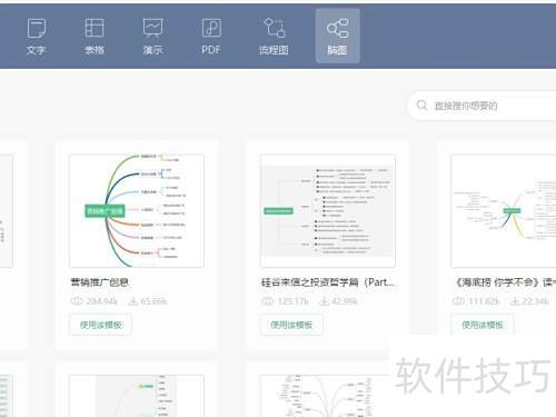 - 在页面右上角的菜单中,选择思维导图并点击进入。