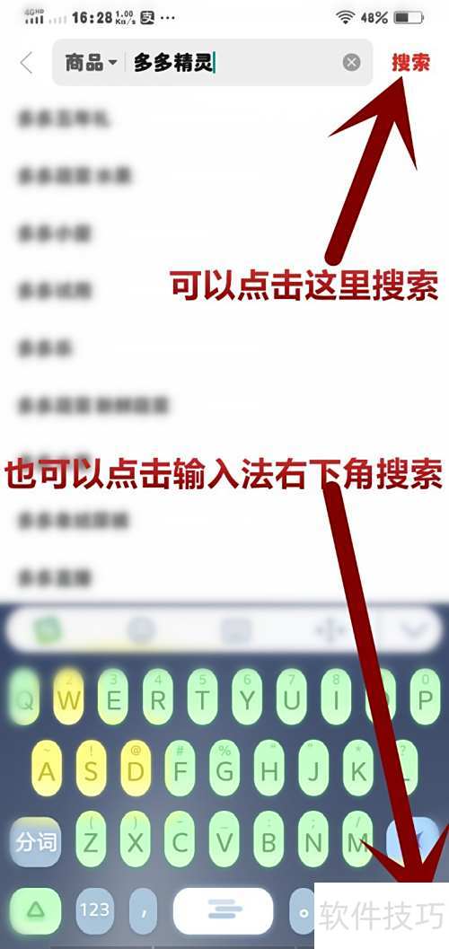 - 在首页顶部搜索框中输入多多精灵进行搜索。