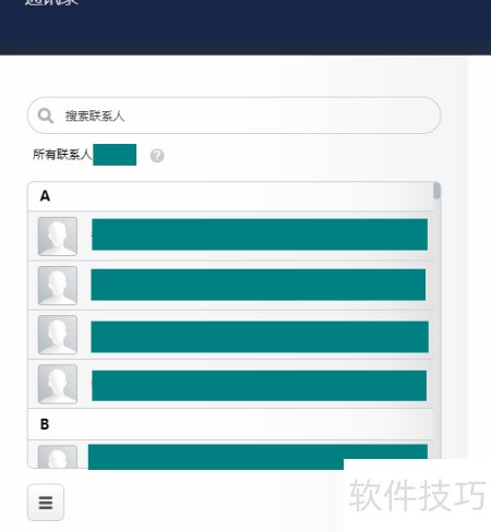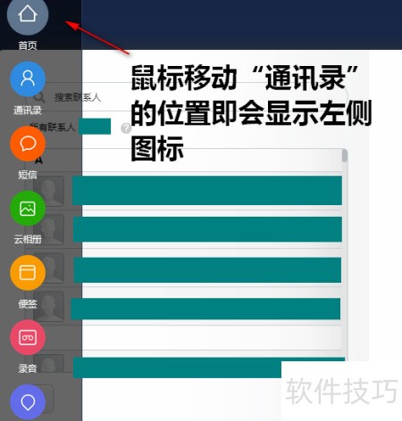 - 将鼠标移至左上角通讯录位置,左侧即弹出菜单,便于快速切换各项功能。