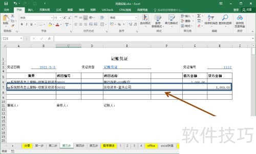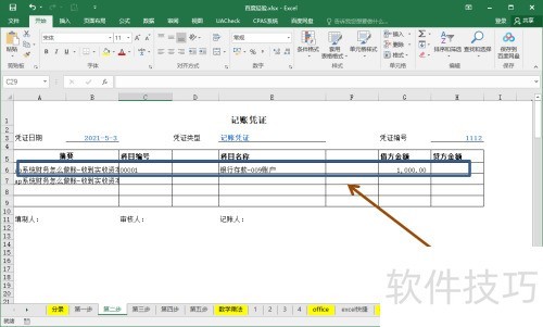 - 填写借贷方后,由编制人签名并提交复核人审核,同时注明凭证日期为2021年5月3日。