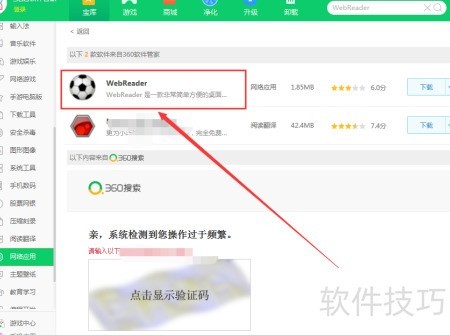 360软件管家中下载WebReader教程