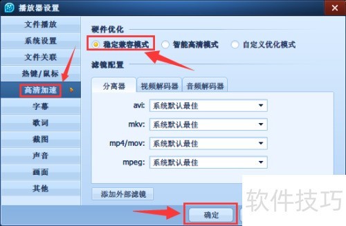- 点击左侧高清加速,选择稳定兼容模式,确认即可。