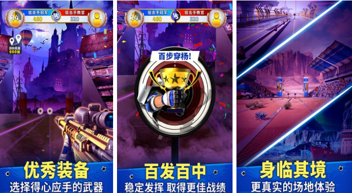 每个闯入本作的大神都有可能晋升为狙击手之王!在这里,体验专业的狙击专家将赋予你的狙击装备展示PK的极致魅力。游戏中还提供了一整套写实的狙击道具,这些科幻风格的狙击武器提供了极佳的物理反馈和写实场景效果,让玩家仿佛置身于奥运赛场,手持各类狙击类枪械参与一系列打靶挑战。