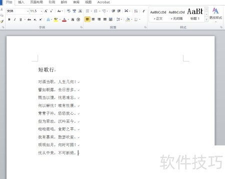 - 输入您想排版的古诗,以曹操短歌行为例。