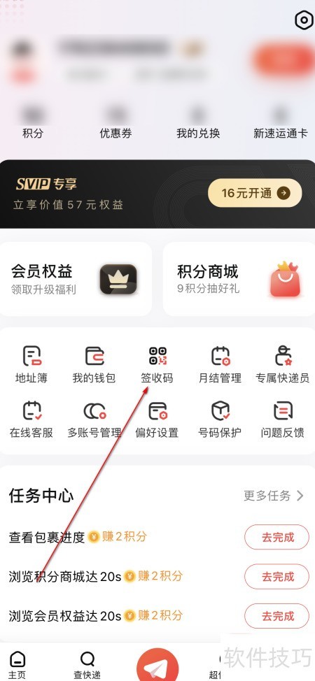 顺丰速运签收码设置方法 时间:2025-12-22 龙运天下承运端 类型:系统工具 大小:43.1mb 语言:简体中文 评分: 查看详情 顺丰速运签收码设置方法 - null - 打开顺丰,进入个人中心。 - 点击按钮,进入签收码页面。 - 输入姓名完成设置。