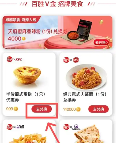 在列表中找到要兑换的商品,点击“去兑换”。