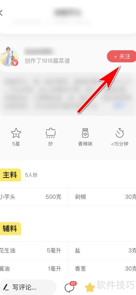 - 系统提示关注成功后,即可订阅该菜谱作者。