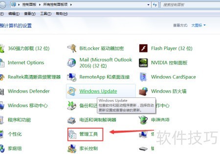 - 进入控制面板,点击管理工具。