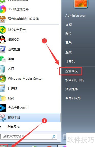 - 点击电脑左下角开始按钮,然后进入控制面板。
