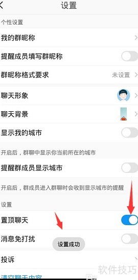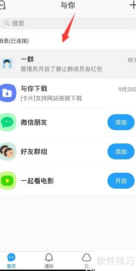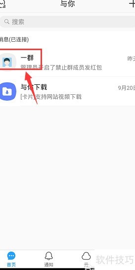 - 开启置顶聊天功能后,返回首页便可看见群组以灰色状态固定显示在顶部位置。