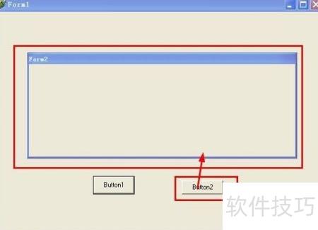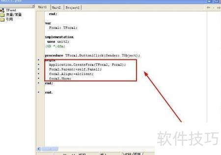 - 在按钮点击事件中添加代码,将手动创建的form2作为panel控件的子对象添加进去。