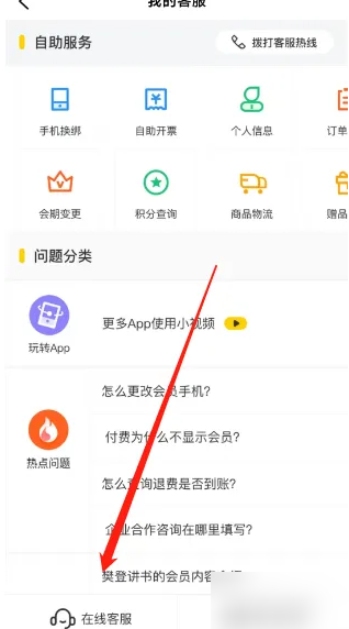 樊登读书app客服在哪里 樊登读书app联系在线客服方法 时间:2025-12-30 phigros正版 类型:仙侠魔幻 大小:2.24gb 语言:简体中文 评分: 查看详情 樊登读书app客服在哪里 樊登读书app联系在线客服方法 打开手机里的樊登读书app后,点击右上角的【耳机】图标 进入页面后,点击左下角的【在线客服】 最后进入详细页面,用户即可在此页面输入问题联系在线客服了。