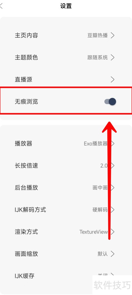 雨林影视关闭无痕浏览方法 时间:2026-01-01 phigros正版 类型:仙侠魔幻 大小:2.24gb 语言:简体中文 评分: 查看详情 雨林影视关闭无痕浏览方法 雨林影视关闭无痕浏览的方法如下,一起来看看具体操作步骤。 - 启动雨林影视应用,进入首页后选择右下角的我的按钮。 - 进入我的页面,选择设置选项。 - 进入设置,关闭无痕浏览开关即可。