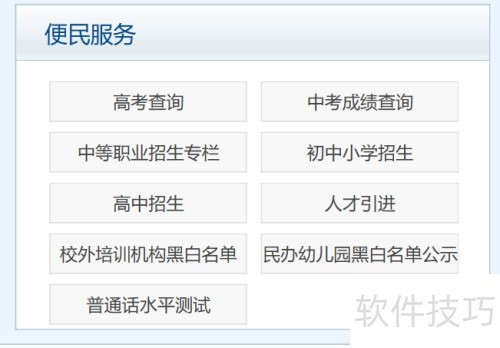 - 进入便民服务后点击中考成绩查询,即可查看相关中考成绩信息。