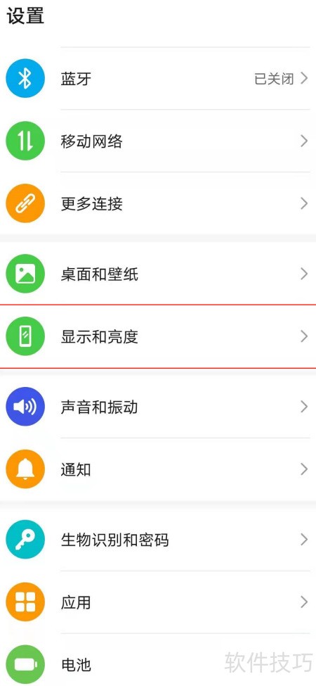 - 打开安卓设置,选择显示与亮度选项。