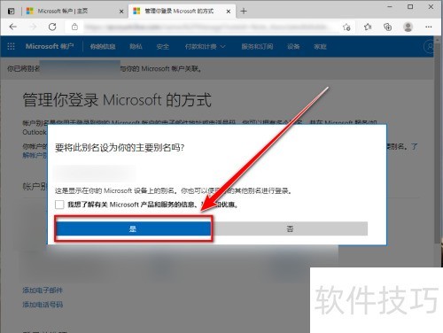 - 在提示框中选择是,即可通过新邮箱登录微软账户。