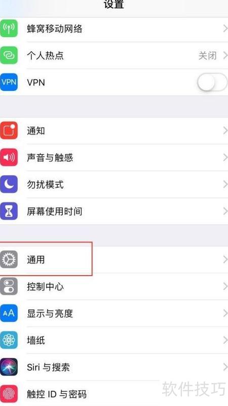 - 下滑页面,找到并点击通用选项进入设置。
