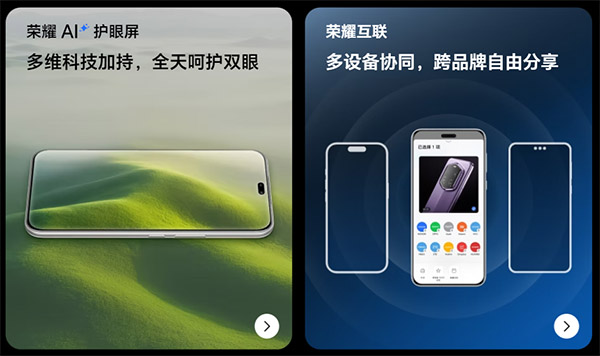 在通信技术上,该机配备旗舰级鸿雁六翼天线系统,并采用荣耀自主研发的射频增强芯片C,实现天线覆盖,中框天线占比达,并创新性地应用了平行双轨天线设计。这种独特的四天线布局显著增强了弱网信号表现,整体提升了的通信性能。