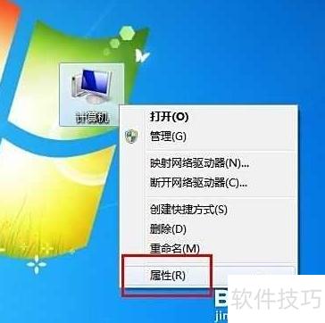 - 右键点击计算机图标,选择菜单中的属性选项。