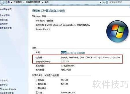 - 在系统属性界面中可查看计算机的基本配置信息。