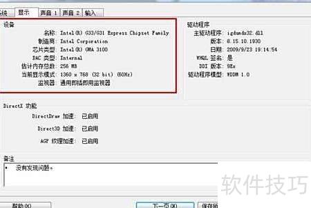 - 进入显示选项卡,即可查看显卡详细信息。