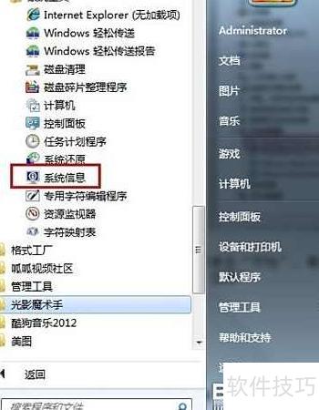 - 依次点击开始、所有程序、附件、系统工具,最后选择系统信息。
