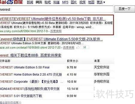 - 在百度搜索everest,点击首个搜索结果链接,下载该软件并完成安装即可。