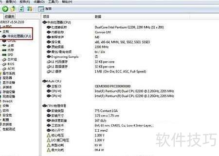 在左侧菜单栏中,点击展开所需项目,如查看CPU详情,分别展开主板和CPU即可获得详细信息。