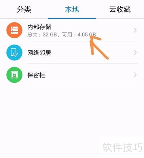 - 在弹出的窗口里选择本地下的内部存储选项。