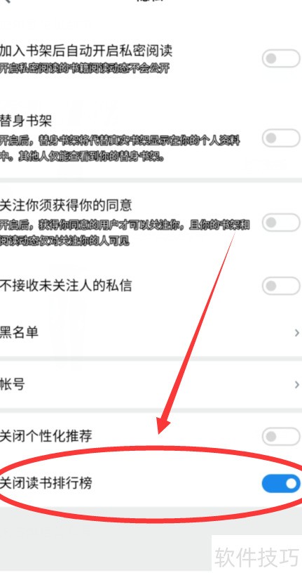 微信读书关闭排行榜方法 时间:2026-01-12 微信9.0版 类型:学习办公 大小:62.2mb 语言:简体中文 评分: 查看详情 微信读书关闭排行榜方法 微信读书如何关闭排行榜?接下来为你详细介绍具体操作步骤,轻松实现功能设置。 - 打开手机中的微信读书应用。 - 先点右下角我,再点右上角图标。 - 下滑进入隐私设置并点击开启。 - 下滑查找关闭读书排行榜并点击开启即可完成操作。