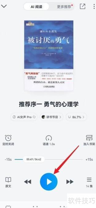 微信读书开启朗读功能指南 时间:2026-01-12 微信9.0版 类型:学习办公 大小:62.2mb 语言:简体中文 评分: 查看详情 微信读书开启朗读功能指南 想要在微信读书中开启朗读功能吗?赶紧看这个详细的教程。只需几步,就能享受畅听的乐趣了! - 打开应用,选择书籍,进入详情页后点击阅读。 - 打开阅读页,触屏后点听音按钮 - 进入书页点击播放,即可开启语音朗读功能。