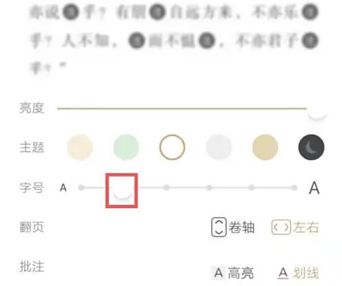 将字号旁边滑轨上的滑块左右拖动可调整字体大小。
