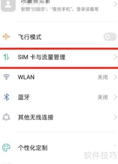 - 进入手机设置,选择SIM卡与流量管理选项。