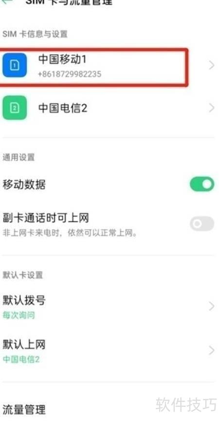 - 选择需关闭高清通话功能的手机卡