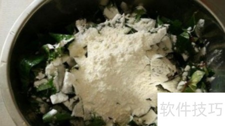 将面粉与玉米粉以适当比例混合,均匀撒在新鲜的蔬菜叶子上,轻轻翻转使面糊均匀分布,根据需要可分次加入防止不匀。