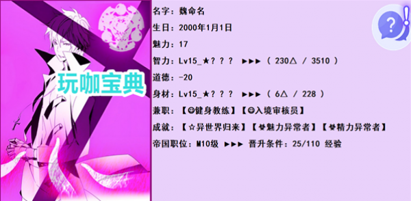 获取奖励:三围(魅力/智力/身段)+5,体力上限+299,专属称呼+符号