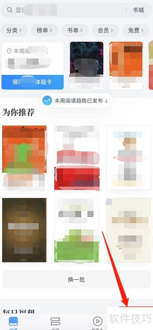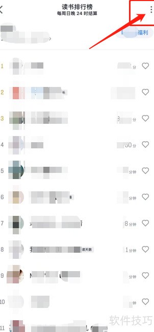 - 进入读书排行榜,点击右上角图标,操作所示。