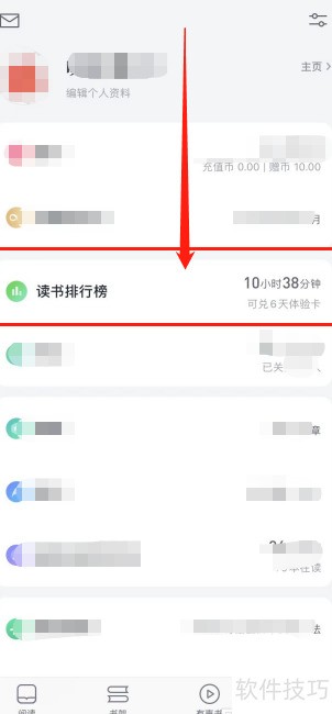 - 进入我的页面,点击读书排行榜即可查看。