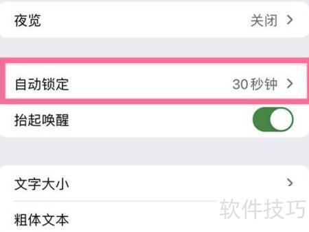 - 进入自动锁定设置,选定所需锁屏时间完成配置。