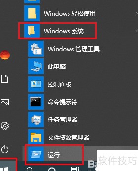 - 点击开始菜单,选择Windows系统中的运行选项。
