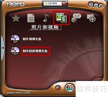 - 文件创建完毕,启动Nero刻录软件,选择照片和视频项,点击制作超级视频光盘即可。
