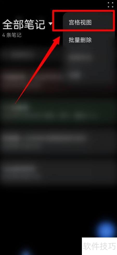手机备忘录宫格视图设置方法 更新时间:2026-01-20 14:16:51 手机备忘录宫格视图设置方法 手机备忘录设置宫格视图的操作步骤如下 - 点击记事本图标 - 打开手机,点击备忘录应用图标。 - 点击菜单按钮 - 进入备忘录,点击右上角菜单图标。 - 点击宫格查看 - 点击面板中的宫格视图选项即可。