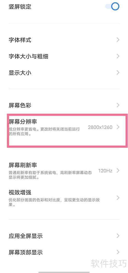 - 可根据需要在2400×1080或2800×1260中选择分辨率,以vivo X90 Pro为例,该设置适用于OriginOS 3系统。