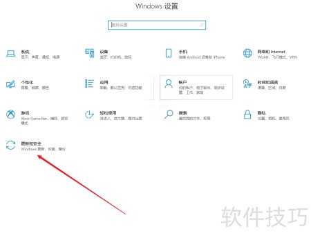 - 进入设置页面后选择安全与更新选项