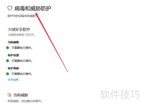 - 进入Windows安全中心,选择病毒和威胁防护,向下滚动即可看到相关设置选项。