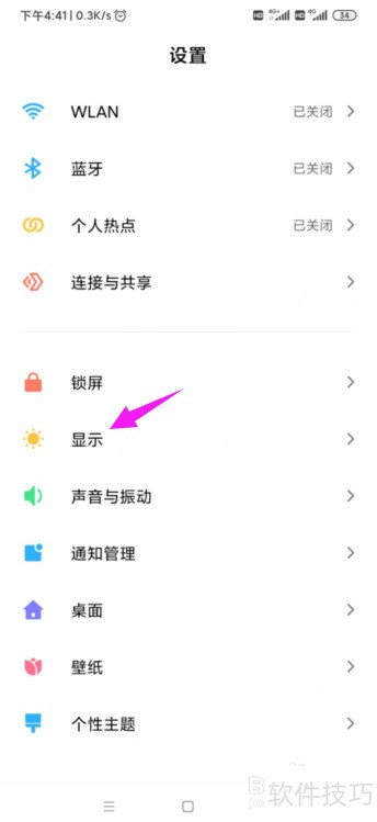 - 进入设置,选择显示选项。