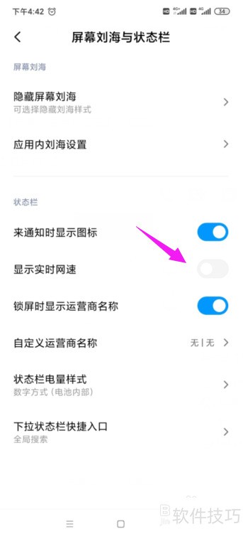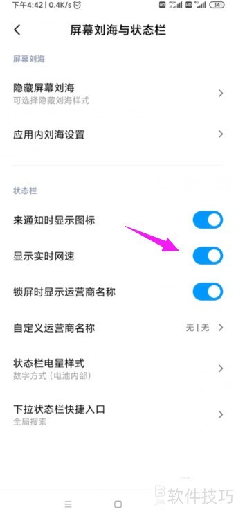 - 开启实时网速显示,需进入手机设置界面操作。