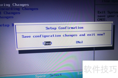 - 调整完毕后,用左右键移至退出选项,确认保存并退出,操作所示。