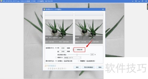 点击调整图片尺寸时,首先取消勾选“锁定比例”的选项;若要保持原图比例,请保留此选项以防止变形。